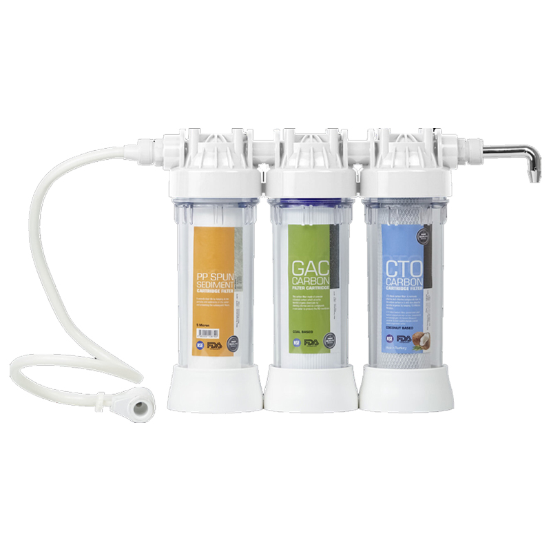 HSC Arıtım Üçlü Musluk Tipi Filtre Seti (Triplix) Musluğa doğrudan bağlanan pratik tasarımı ile ek bir cihaza ihtiyaç duymadan kısa sürede kurulabilir ve anında arıtılmış su konforu sunar. Kompakt yapısı mutfak kullanımına uygundur ve yer kaplamaz.